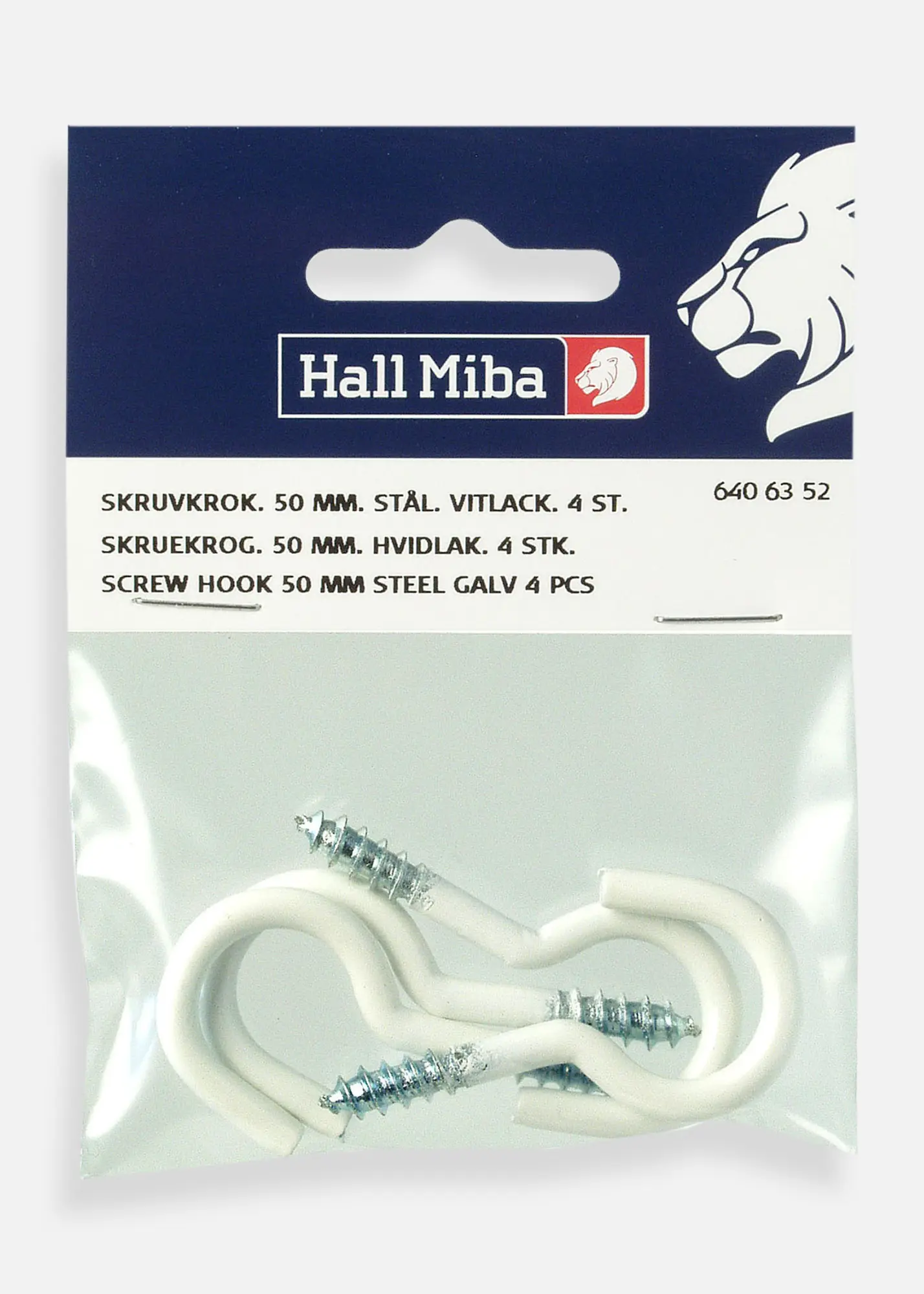 Cârlig cu șurub 50 mm Oțel Vopsit alb este un cârlig puternic și discret cu suprafață vopsită alb care oferă un finisaj elegant. Perfect pentru agățarea ramelor, lămpilor sau a altor obiecte. Livrat într-un pachet de 4 bucăți.