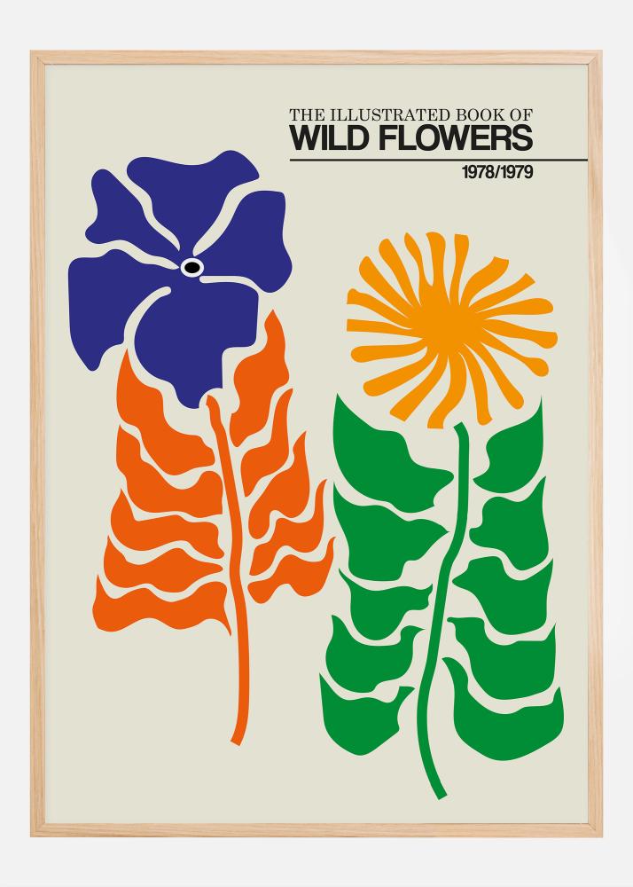 Pășiți în lumea vibrantă a florilor sălbatice cu posterul 'The Illustrated Book of Wild Flowers'. Acest afiș strălucitor și energic face parte din seria care explorează frumusețea nepretinsă a florei sălbatice. În acest volum ne bucurăm de două flori; una cu petale albastre încântătoare care vibrează pe o siluetă portocaliu ars a frunzelor sale, iar cealaltă o floare asemănătoare unei raze de soare cu petale galbene vibrante pe un fundal de frunziș verde bogat. Această operă de artă reprezintă anotimpul 1978/1979, poate o perioadă când aceste flori au înflorit deosebit de luxuriante.