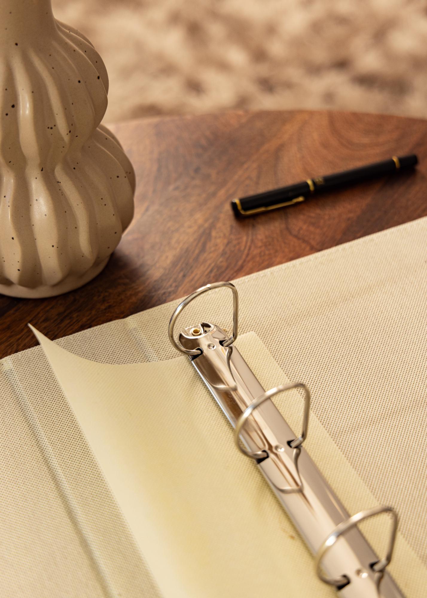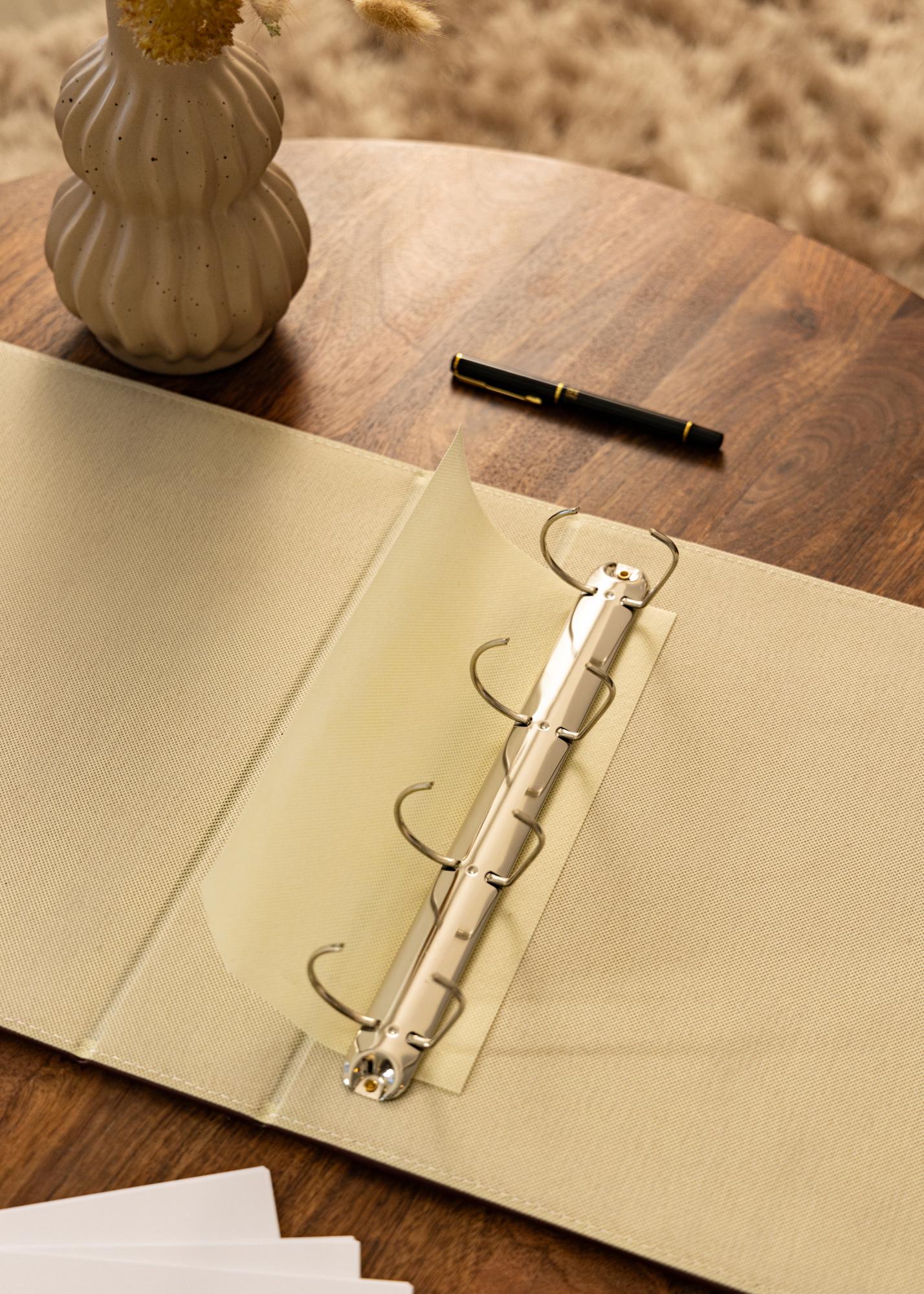Together Ringpärm Maro A4 este un dosar elegant și practic pentru pagini de album în format A4. Perfect pentru a organiza și păstra fotografiile sau alte documente importante într-un mod elegant și convenabil. Culoarea maro oferă o impresie clasică și atemporală.