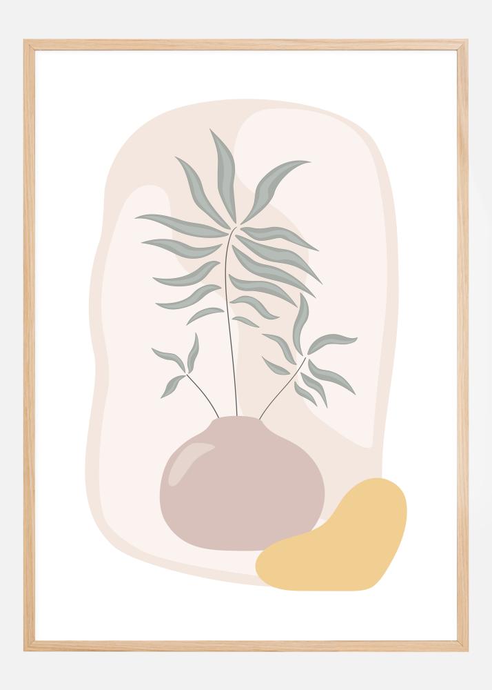 Un poster stilizat cu o vază din care iese o plantă verde. Alte forme și culori ciudate umplu fundalul și fac din aceasta o operă interesantă, dar cumva abstractă. Asortați cu un desen în stil similar pentru a crea o mini galerie acasă.