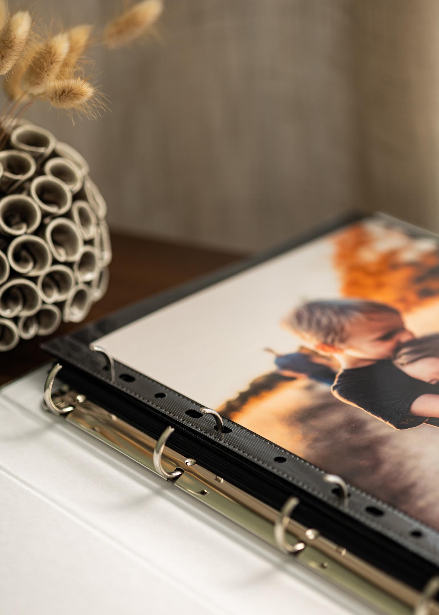 Ultimate Fotofickor 21x29,7 cm A4 Vertical este un set de 5 foi negre pentru album, de dimensiunea 23,5x32,5 cm. Ele pot conține în total 10 fotografii verticale în format A4 (21x29,7 cm). O soluție practică și elegantă pentru a organiza și păstra fotografiile tale într-un mod sigur și vizibil.