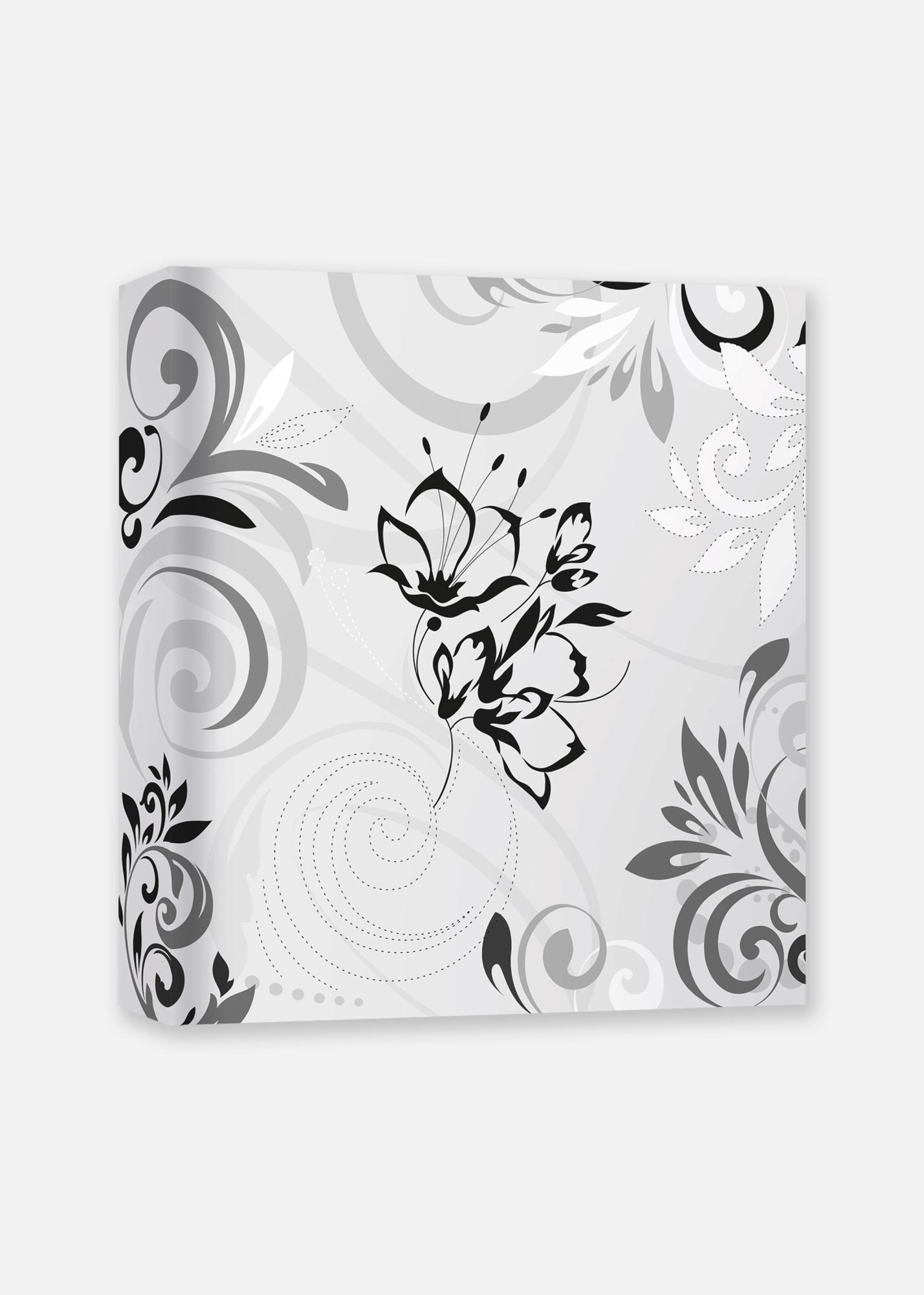 Coperta albă este prevăzută cu modele florale decorative în gri și negru, ceea ce face acest album să fie și un frumos detaliu de decor interior.