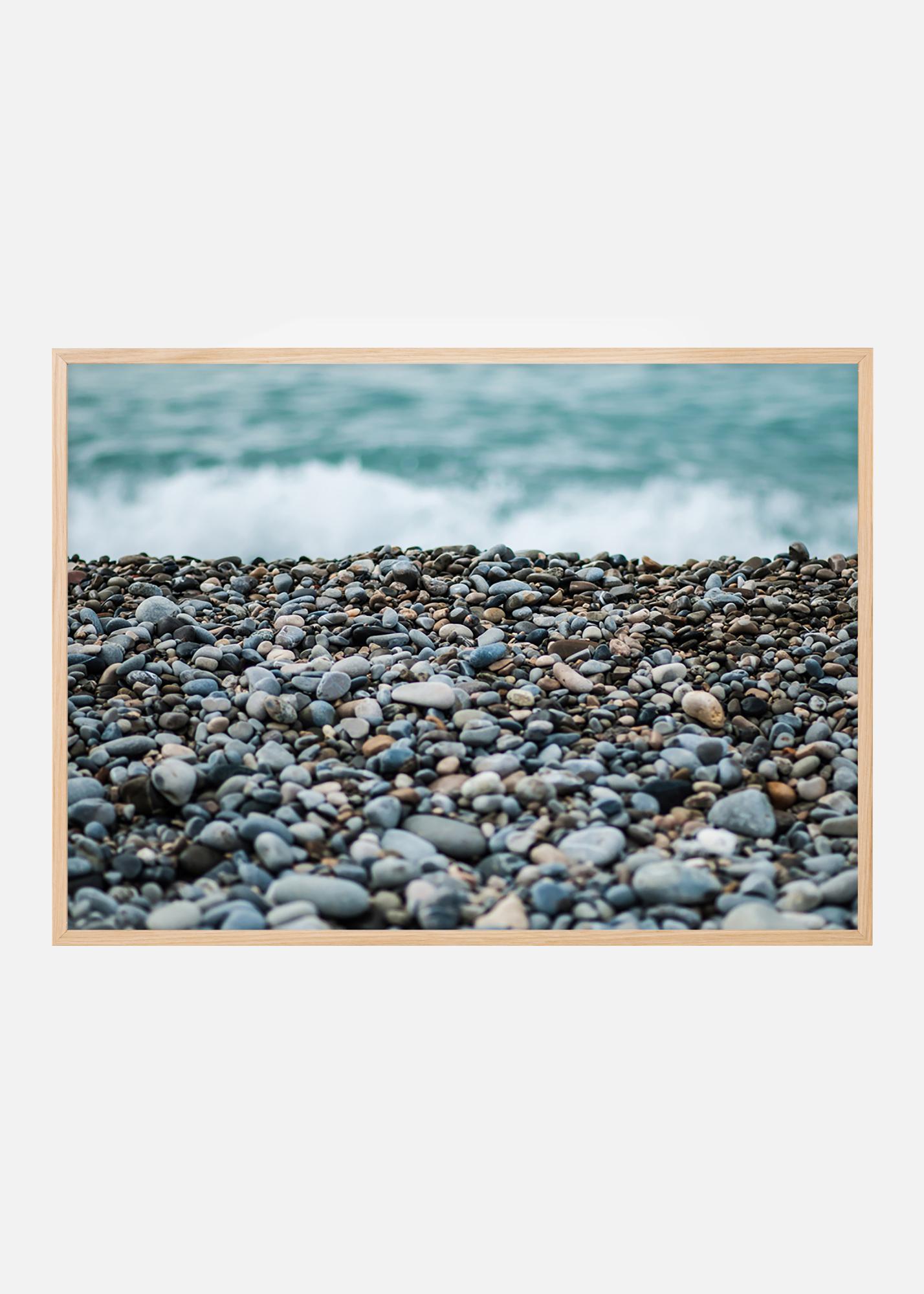Ascultă vuietul valurilor mării de pe acest poster cu o plajă stâncoasă frumoasă în prim-plan. Profunzimea redusă a câmpului creează o imagine interesantă care atrage privirea în imagine. Găsești vreo bucată de sticlă rotunjită printre pietre? Paleta de culori gri-albastră arată bine cu o ramă îngustă pe un perete luminos, de preferat cu accesorii marine alături.