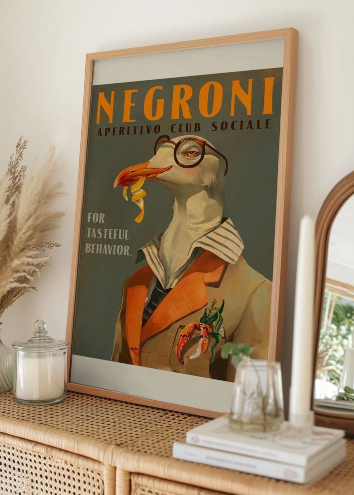 Vintage Art Deco Negroni Poster Of A Fancy Seagull Poster