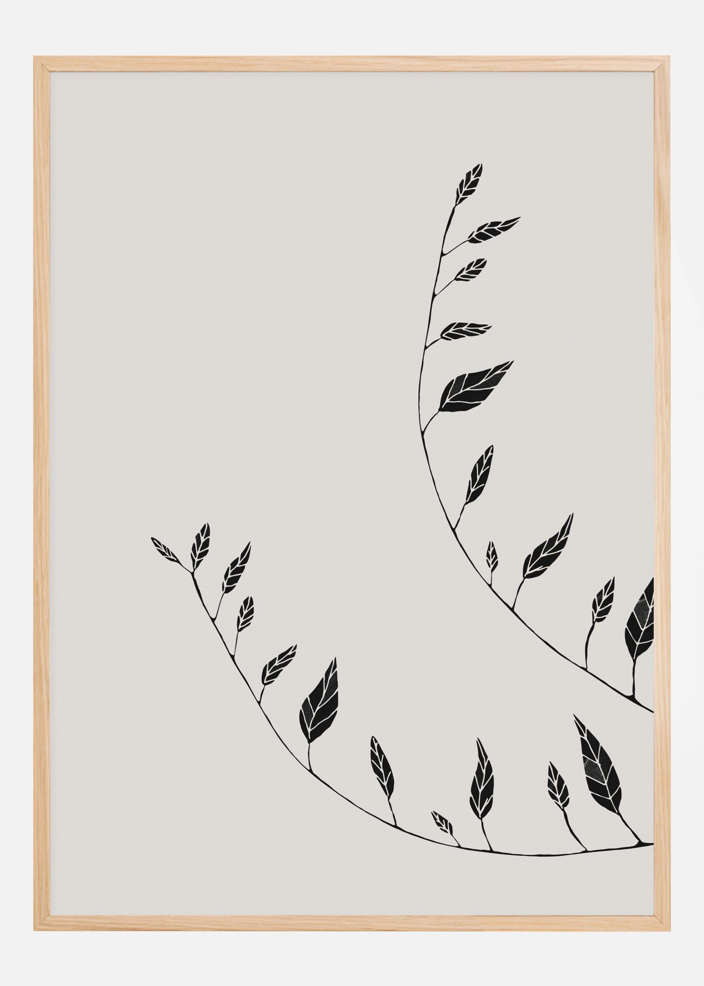 Un poster alb-negru cu ramuri și frunze simple pe un fundal alb. Două ramuri intră din dreapta și se îndoaie în sus până în partea de sus a posterului. Frunzele sunt toate orientate în sus pe o parte a fiecărei ramuri. Îndoiturile dau o senzație că planta crește pe măsură ce se întinde spre un soare invizibil.