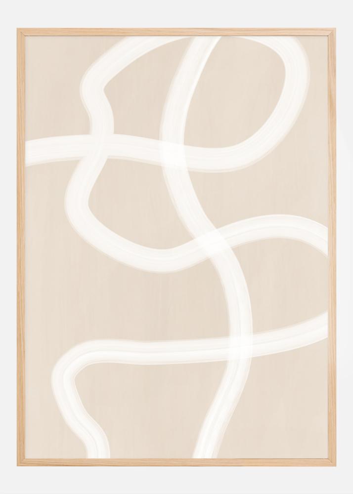 Pensulele albe amplu desfășurate ale acestui afiș pe un fundal bej cald oferă o estetică captivantă și contemporană. Liniile sale curgătoare și formele sale organice oferă un sentiment de mișcare și spontaneitate, păstrând în același timp o senzație simplificată și curată tipică designului minimalist modern.