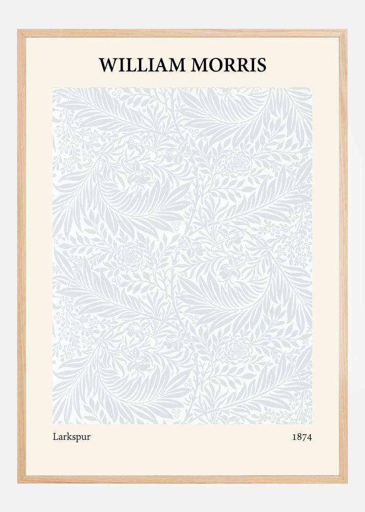 Această delicată și detaliată afișă William Morris intitulată "Larkspur" și datată în 1874 este un exemplu excelent al stilului clasic Arts and Crafts. Modelul este un labirint de larkspur înflorit și frunze fin reglate, frumos prezentate într-o paletă de culori uniformă. Designul este sofisticat și subtil, ceea ce face ca acest imprimeu să fie un adaos ideal pentru o impresie liniștită și colectabilă în casă.