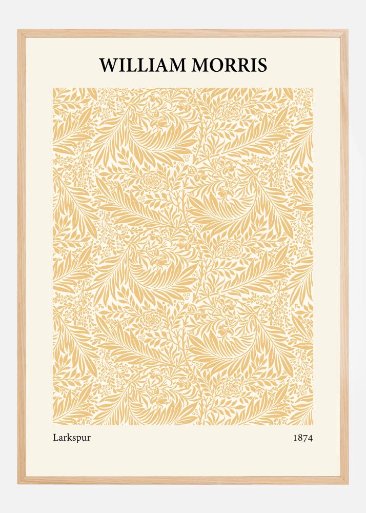 Cu tonul său cald, monocromatic de auriu, acest poster recreează designul luxuriant al lui William Morris „Larkspur” din 1874. Compoziția bogată de frunze și flori dansează pe hârtie, ilustrând măiestria și precizia pentru care Morris este cunoscut în cadrul mișcării Arts and Crafts. Acest poster aduce o senzație de căldură și lumina soarelui oricărei camere și este un omagiu minunat adus meșteșugului artistic din epoca victoriană.