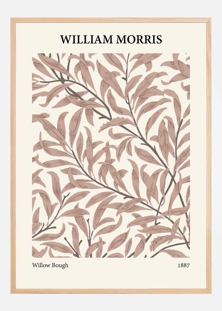 Această design de poster aduce un omagiu operei lui William Morris „Willow Bough” din 1887 și este o reprezentare minunată a angajamentului lui Morris pentru modele inspirate de natură. Frunzele de salcie frumos conturate se întind pe un fundal de culoare crem, creând un contrast armonios care este atât liniștitor, cât și estetic plăcut. Nuantele de maro și bej transmit o senzație de încălzire care este tipică pentru munca lui Morris.