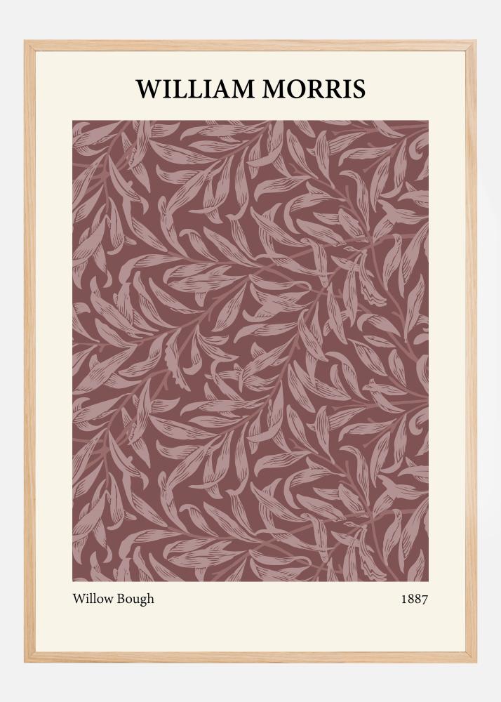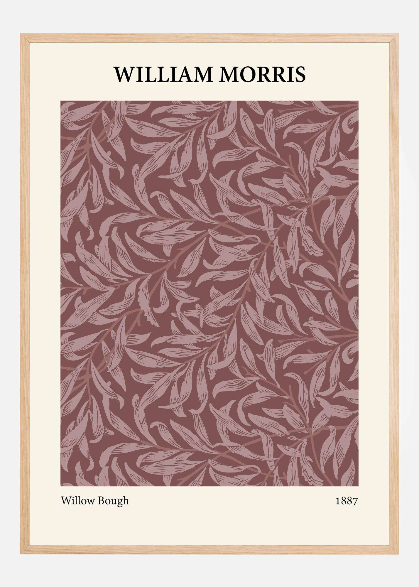 Afișul distinctiv pune în evidență frumusețea lucrării "Willow Bough" de William Morris din 1887, prezentată aici în tonuri calde și bogate de roșu cărămiziu care amintesc de frunzele de toamnă sau scorțișoară. Frunzele de salcie care dansează pe fundalul adânc dau o senzație atât de mișcare, cât și de profunzime, făcând din acesta unul dintre cele mai izbitoare modele ale lui Morris.