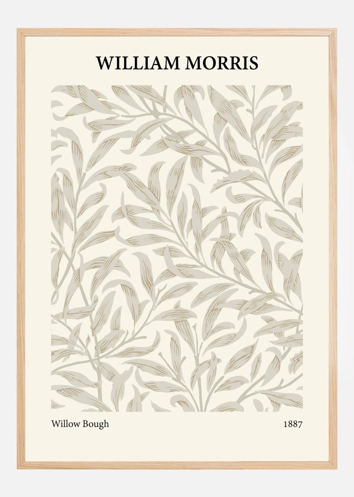 Această afișă încântătoare prezintă modelul iconic "Willow Bough" al lui William Morris din 1887, un omagiu adus frumuseții liniștite a naturii englezești. Modelul cu frunzele sale dansante de salcie este o reprezentare magistrală a talentului lui Morris de a surprinde mișcările și formele naturii în lucrările sale de artă. Paleta liniștitoare de nuanțe verzi moi și crem oferă o impresie plăcută și relaxantă, care amintește de o grădină pașnică.