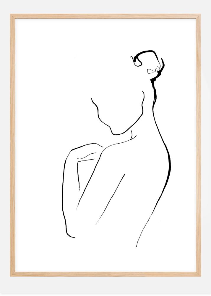 Frumos desen liniar delicat al unei femei, realizat în cerneală, creat de artista Cora Eklund, Cora Konst & Illustration. Un poster simplu și elegant care se potrivește în majoritatea caselor și stilurilor de decor și care, prin realizarea sa, este ușor de combinat cu alte preferințe pe un perete de tablouri mai mare.