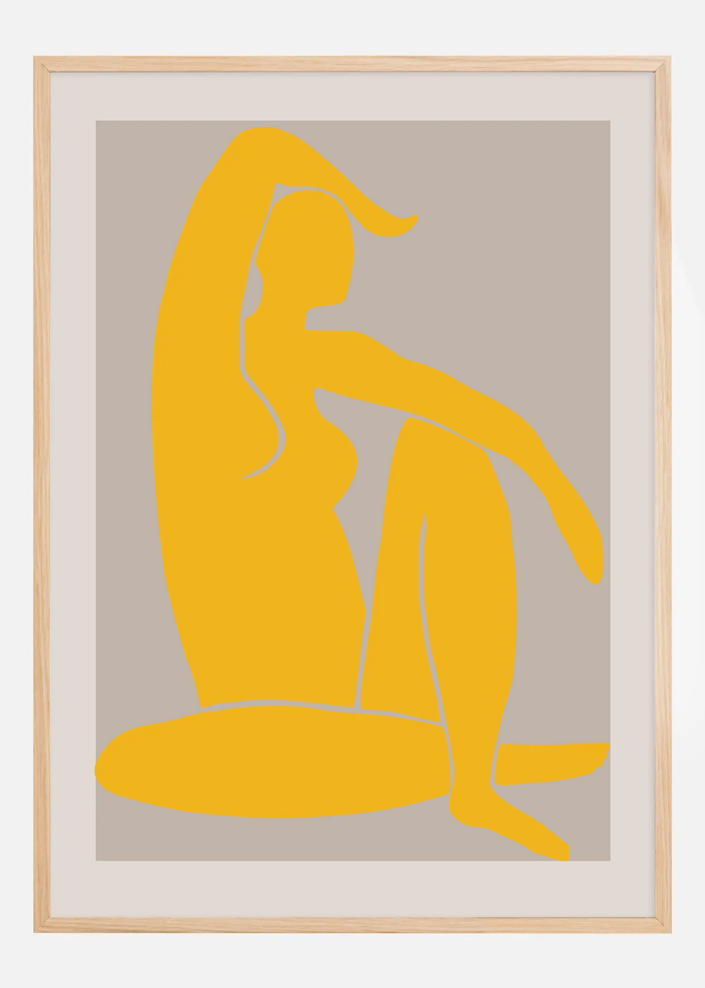 Această poster elegantă și provocatoare, intitulată 'L'arte découpé', evidențiază frumusețea abstractă a formei umane. Într-o nuanță îndrăzneață și însorită de galben, este redată o figură stilizată care stă într-o poziție relaxată, oferind o senzație de calm și reflecție. Această operă de artă provoacă limitele reprezentărilor tradiționale și invită privitorul să reflecteze asupra interacțiunii dintre formă și culoare. Liniile sale curate și fluide pe fundalul gri-închis oferă o interpretare modernă a siluetei clasice, făcând-o un afiș ideal pentru cei care apreciază designul și arta contemporană.